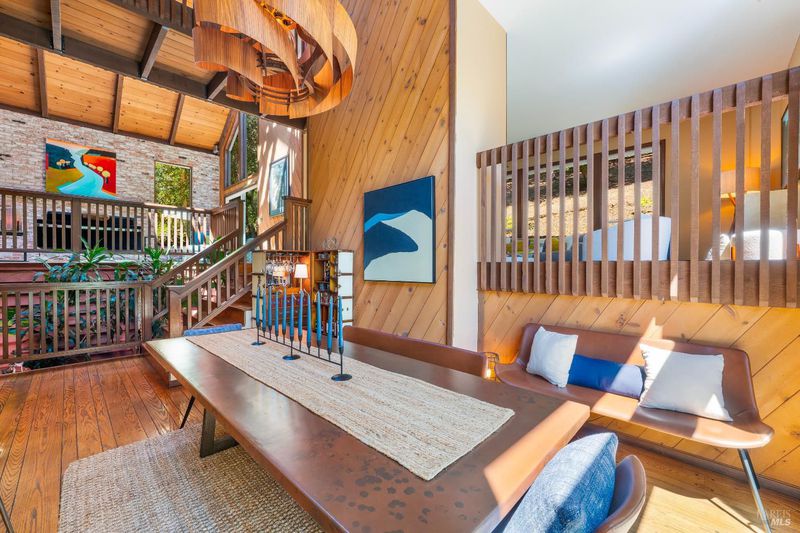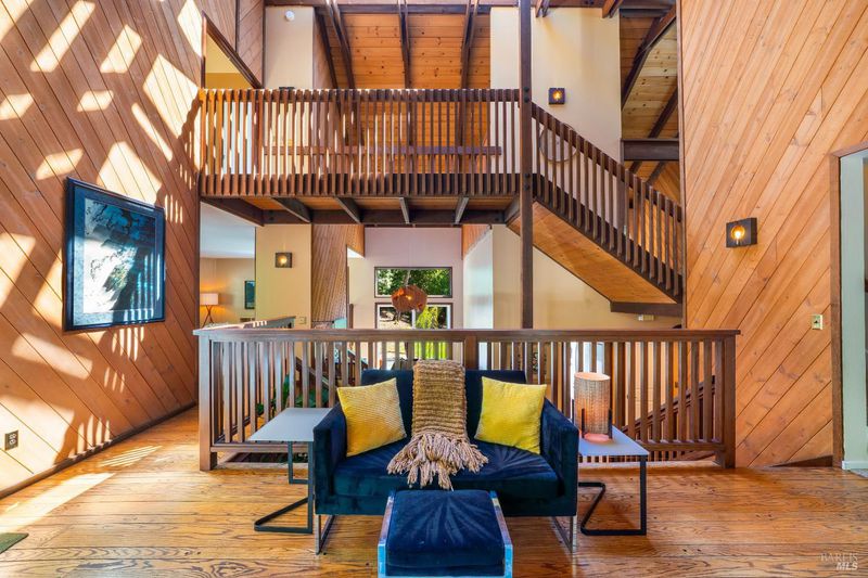 A rare opportunity to enjoy complete privacy in the highly coveted Montecito Heights, just a half-mile from vibrant shops and dining. This mid-century modern masterpiece is meticulously maintained and boasts soaring ceilings with skylights, atrium, sunroom, gorgeous hardwood floors, and new custom light fixtures. Attached 2-car garage plus detached lofted 2-car garage, easily converted into a MIL/rental unit. Perfect too as a music, art or yoga studio. With 5 bedrooms (two with lofts), 3.5 bathrooms, and large custom office with closet, this special residence boasts unparalleled aesthetics, luxury, comfort & versatility. The private primary en-suite bedroom showcases a vaulted ceiling, jetted tub, balcony, custom closet & picturesque windows framing nature, while two living rooms beckon w/ fireplaces, & seamlessly extend to sprawling wrap around deck & yard. This magical property features a new seasonal creek with river rocks. Relax and enjoy wildlife. Abundance of room for your pickle ball court, dream pool, hobby vineyard, garden oasis, the possibilities are endless, and no HOA! Must see to believe!
