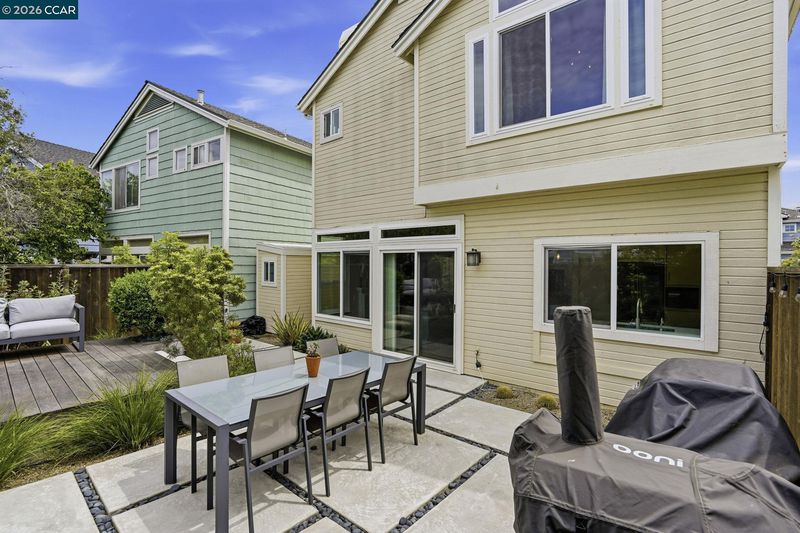 This beautifully maintained home is located in the gated Breakers Community, one of Marina Bay’s most sought-after neighborhoods. Thoughtfully updated, it offers a seamless blend of style and functionality, surrounded by mature, low-maintenance landscaping. The backyard is ideal for relaxing & entertaining with expansive pavers, a large deck, & a detached structure perfect for storage, private office, or flex space. Upon entry, you’re welcomed by soaring ceilings, abundant natural light & picturesque windows that enhance the home’s bright, open feel. Formal living & dining rooms provide an elegant setting for everyday living and gatherings. The spacious chef’s kitchen features high-end stainless steel appliances & an oversized peninsula with counter seating, flowing effortlessly into the family room for easy entertaining. The primary suite offers cathedral ceilings, a walk-in closet, and a spa-like bathroom. Two additional bedrooms are generously sized with ample storage, and a dedicated office adds flexibility for work or guests. Additional highlights include a smart home system, owned 6 kWh solar panels, an electric vehicle charger, and a two-car garage with extra storage. Enjoy a gated entrance, community pool & spa, and well-maintained common areas, all just minutes from trails, parks, the Marina Bay waterfront, major highways, BART, & the ferry terminal.