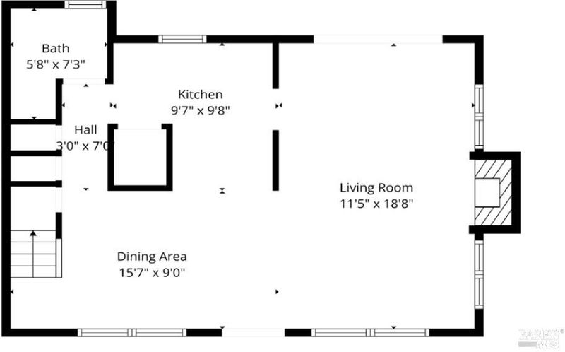 - Dining Room, Kitchen, Living Room, Partial Bath(s), Street Entrance