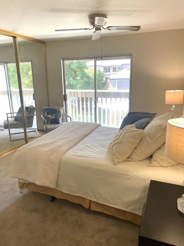 Welcome to your new home in the vibrant city of San Jose. Prime Merrivale West location, walking distance to the pool. This charming residence offers 1,056 sq ft of living space with two cozy bedrooms, including a Primary Suite/Retreat, and two full bathrooms featuring both a stall shower and a shower-tub combination. The kitchen is a true delight, equipped with electric cooktop, quartz countertops, and modern appliances including a dishwasher, exhaust fan, garbage disposal, microwave, oven range, and refrigerator. Enjoy the comfort of central forced air heating and ceiling fan cooling. The flooring is a mix of carpet, laminate, and vinyl/linoleum for versatile style and easy maintenance. Laundry is conveniently located in the garage, which also includes a washer and dryer. The property falls within the Moreland Elementary School District. Additional amenities include access to a fenced, heated, in-ground community pool for leisure and relaxation. This home offers everything you need for comfortable living in San Jose.