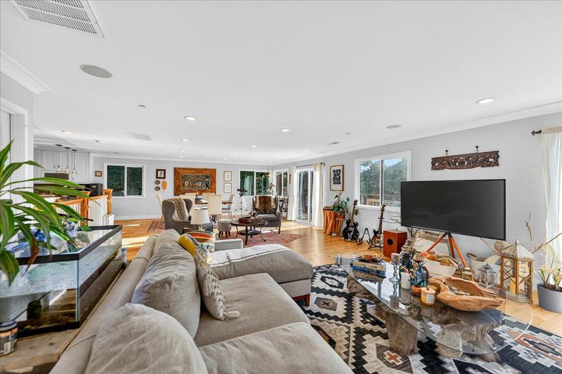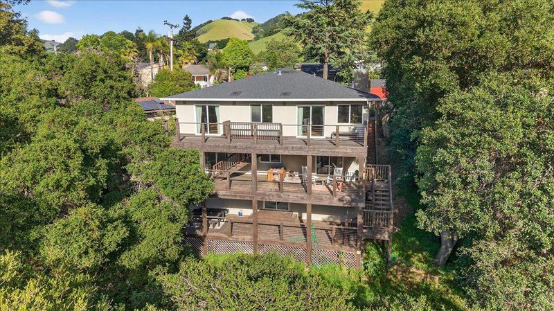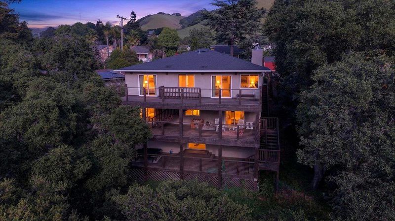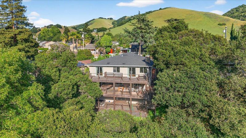 Contemporary three-story home in Fremont's Canyon Heights neighborhood, perched in the Niles hills with sweeping views of the surrounding hillsides and tree canopy. Understated street presence gives way to a sophisticated interior that belies the scale and quality within. Fully reimagined in 2017, the open-concept main level features wide plank hardwood floors and walls of windows that bring the outdoors in from multiple exposures. The open chef's kitchen is anchored by a large center island with bar seating, quartz countertops, white shaker cabinets, stainless steel appliances, stone backsplash, and pendant lighting. A fireplace anchors the main living area. The primary suite is generously scaled with dual vanities. A finished lower level of approximately 800 square feet, reflected in county records, provides flexible space for a media room, home gym, or guest accommodations. Across multiple levels, 1,360 square feet of decks step down the hillside and frame unobstructed views of the canyon and hills. Roof and HVAC both replaced in 2017. Minutes from Niles Canyon Road and Alameda Creek Regional Trail. Downtown Niles is walkable with a Saturday farmers market, antique shops, and local dining. Buyers to verify school enrollment eligibility with Fremont Unified.