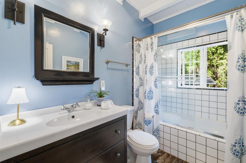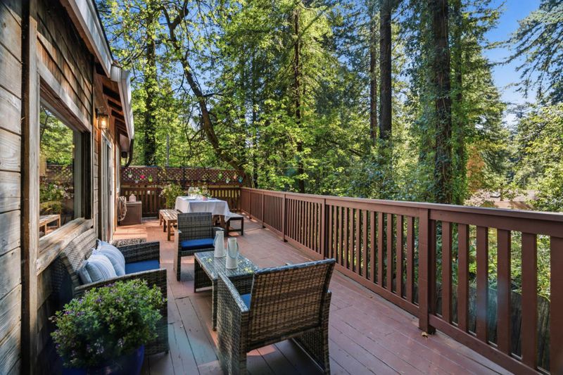 Tucked among the redwoods and set back from the road, this remodeled mountain retreat offers privacy, charm, and a remarkable story. Originally built in 1905 by early Brookdale resident Virginia Garland Ballen, a naturalist, writer and contributor to the movement that helped preserve Big Basin Redwoods, this home was known as 'The Call of the Wild' where Virginia hosted gatherings of writers, artists and early conservationists inspired by the Santa Cruz Mountains. Today the home blends that historic character with modern comfort. Vaulted ceilings, skylights, wood floors and a stone hearth create a warm and inviting living space while the updated kitchen features stone countertops and modern appliances. Outdoor living is central to the property with multiple seating areas, a large entertaining deck, a hot tub beneath the redwoods and a detached studio ideal for an office, art space, or guest overflow. The fully fenced property offers parking for multiple vehicles and a seasonal babbling brook that adds to the peaceful setting. This move-in ready home offers a rare blend of history and comfort just a short drive to Boulder Creek, Santa Cruz, the beaches, and hiking in Big Basin and Henry Cowell. A unique opportunity to own a piece of history in a setting that continues to inspire.