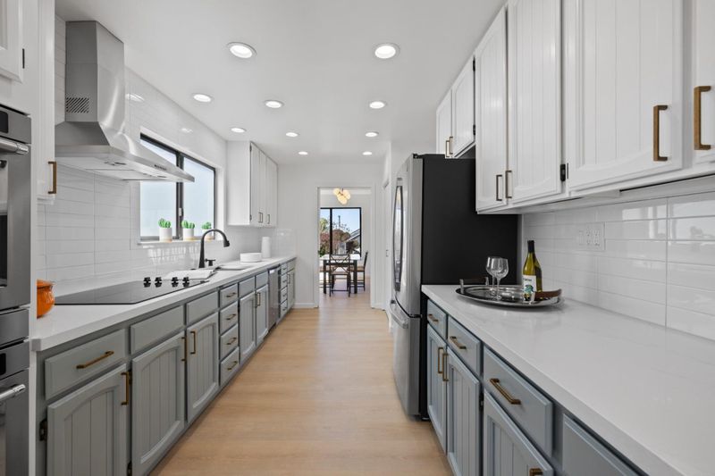This beautiful home is 2,560 square feet on a generous lot size of 8,156 square feet. With 5 spacious bedrooms and 3full bathrooms, the residence offers ample space for relaxation and comfort. This home is designed with high ceilings that add to the grandeur and openness of the floor plan. A large kitchen fitted with stainless steel appliances serves as the heart of this home, providing an ideal setting for preparing meals or entertaining guests. There is a room off the kitchen that would make a lovely breakfast nook and a huge bonus pantry with a sink.  The living room features large windows that not only let in abundant natural light but also provide breathtaking ocean views. From here, one can also admire the majestic mountain vistas that surround this property and the large, open back yard.  A unique feature of this home is its huge garage which provides ample storage space. This could also serve as a workspace or hobby area depending on your needs. The property has been fully remodeled, ensuring that it meets modern standards of style and comfort. An additional benefit is the potential lower level with a kitchenette that could be used as an in-law suite or even as a source of rental income. This bonus feature adds versatility to this already impressive property.
