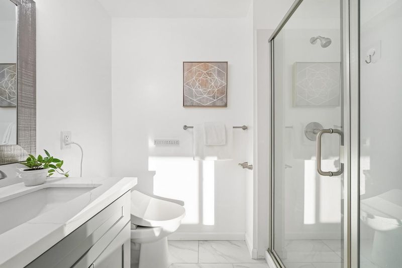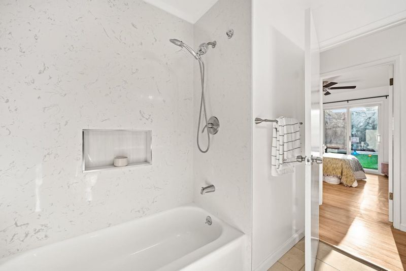 - Double Sinks, Primary - Stall Shower(s), Shower and Tub, Stall Shower, Stone, Tile, Updated Bath
