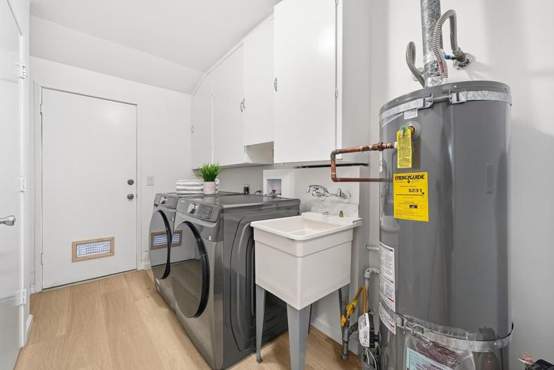- Electricity Hookup (220V), Gas Hookup, In Utility Room, Inside, Washer / Dryer