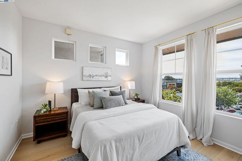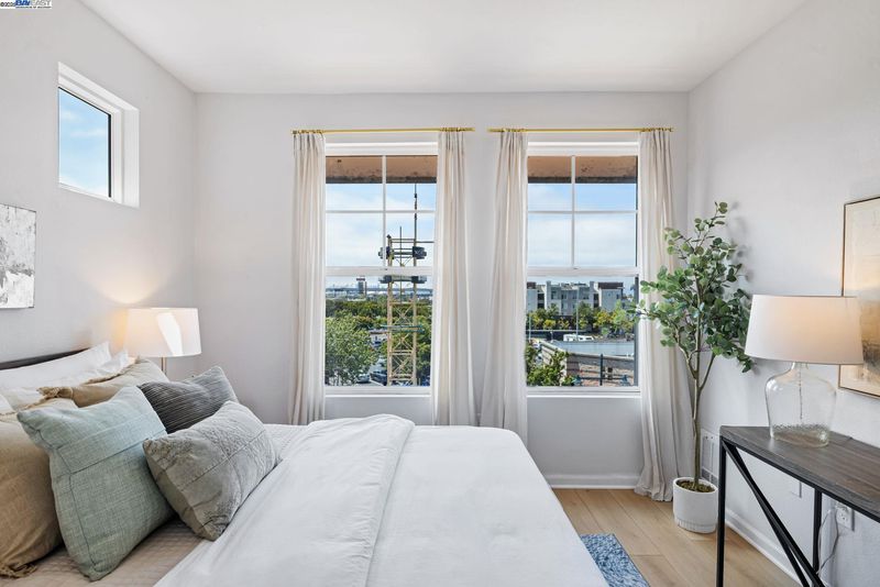 Perched on the top floor with Bay Area views, this 2-bedroom, 2-bath condominium combines modern style with everyday convenience. The inviting formal living area is enhanced by recessed lighting and updated wood floors, creating a warm and welcoming atmosphere. The kitchen features functional layout with a pantry and flows seamlessly into a dedicated dining area and out to a private balcony-your front-row seat to colorful sunsets and sparkling city lights. The primary suite offers a spacious retreat with its own walk-in closet and a well-appointed en-suite bathroom with a vanity and a separate water closet featuring a bidet toilet seat. A second bedroom with a walk-in closet and dedicated vanity enjoys direct access to the full hall bath, making it ideal for guests or a home office. For added convenience, the home includes a laundry closet with a side-by-side washer and dryer, a utility closet for extra storage, and two dedicated parking spaces. Residents also enjoy access to community amenities, including a gym and hot tub-perfect for unwinding or recharging after the day.