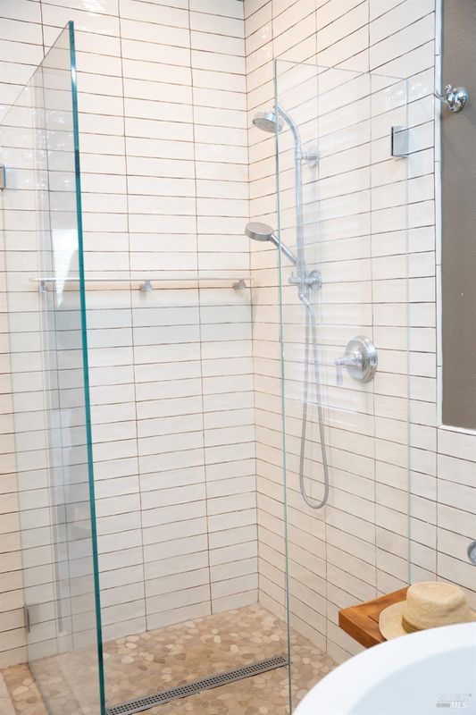 - Bidet, Double Sinks, Shower Stall(s), Soaking Tub, Stone, Tub, Walk-In Closet, Window