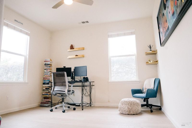 Welcome to this beautifully appointed home in one of Mare Island's most picture perfect neighborhoods. where timeless architecture meets a vibrant waterfront community. Surrounded by scenic trails, parks, and bay views, this sought after neighborhood offers a unique blend of tranquility and convenience just minutes from the ferry to San Francisco and Hwy 37 and 80. Situated on a desirable corner lot, this spacious 4-bedroom, 3-bath residence is thoughtfully designed for both comfort and flexibility. A highly coveted bedroom and full bath on the main level provides the perfect setup for guests or multigenerational living, while upstairs you'll find an airy loft space ideal for a home gym, media room, or additional lounge. Inside, the home showcases a variety of upgrades, including hardwood floors, recessed lighting, and a beautifully remodeled bathroom featuring a walk-in shower with glass surround and soaking tub that adds both character and craftsmanship. An EV charger and a generous 3-car garage bring modern convenience to everyday living. Natural light fills the home, creating a warm and inviting atmosphere throughout. Step outside to enjoy not one, but two outdoor spaces perfect for entertaining, relaxing, or simply enjoying Vallejo's amazing weather. With its blend of modern updates, functional layout, and access to one of Vallejo's most distinctive communities, known for its preserved history, open space, and waterfront surroundings, this home offers an opportunity that's truly hard to replicate.