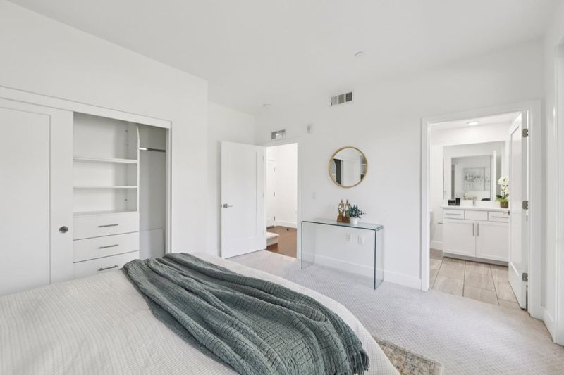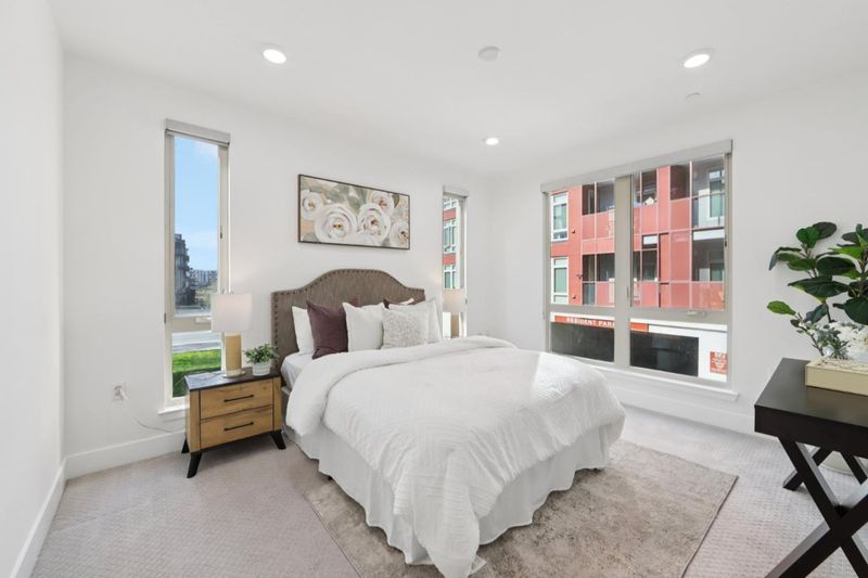 Welcome to this modern, resort like, light filled corner residence, the only 2 story townhouse style condo in the community. Featuring 2 spacious balconies with direct park views, an attached 2 car garage, and enterprise grade smart home infrastructure throughout. 3 bedrooms · 3 full bathrooms · 2 private suites · HOA $564/month The first floor suite includes a built in queen Murphy bed, custom cabinetry, and a private walk out balcony. Upstairs, the open concept main living area offers abundant natural light, corner windows, hardwood flooring, and new carpet. The gourmet kitchen features expansive countertops, sleek cabinetry, and brand new stainless steel appliances. Smart home is professionally wired with enterprise grade infrastructure. A PoE gigabit switch powers hardwired Ring cameras, WiFi 6 mesh, and smart LED lighting throughout, all running on Cat6 Ethernet with no battery dependency. EV ready garage with Level 2 charger, epoxy flooring, and built in cabinetry. Meticulously maintained in like new condition. Prime location near Great Mall, dining, shopping, freeway access, and Milpitas BART/VTA. Top rated Northwood Elementary School.