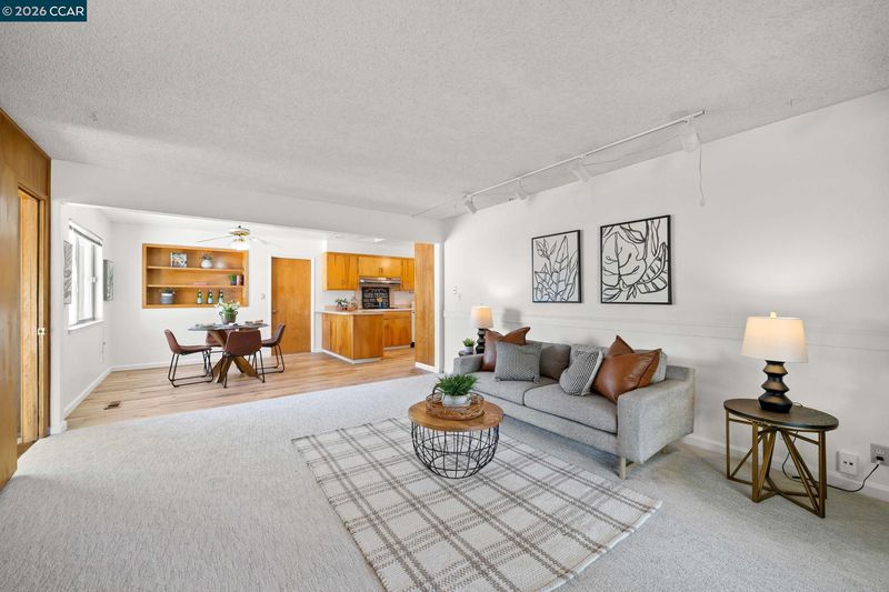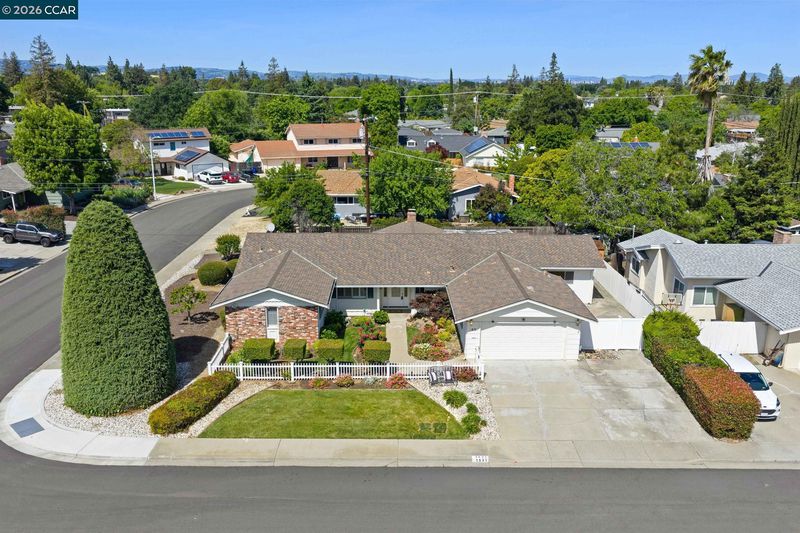 Absolutely adorable single story rancher with a white picket fence on a large corner lot! Updates include dual pane windows, new interior paint, new carpet and vinyl flooring in kitchen and baths. Kitchen features a sunny skylight, ample cabinets, and an adjoining casual dining area that opens to the spacious family room, which includes built-in shelving and a sliding glass door to the rear yard. Large living room boasts a brick fireplace flanked by sunny windows and a vaulted wood plank and beam ceiling. Primary suite & bath with a stall shower, dual closets with organizers, and a cedar floor. Big Bonus room off living area includes a slider to backyard offering many possibilities. Large corner lot features an expansive covered patio & low maintenance landscape.